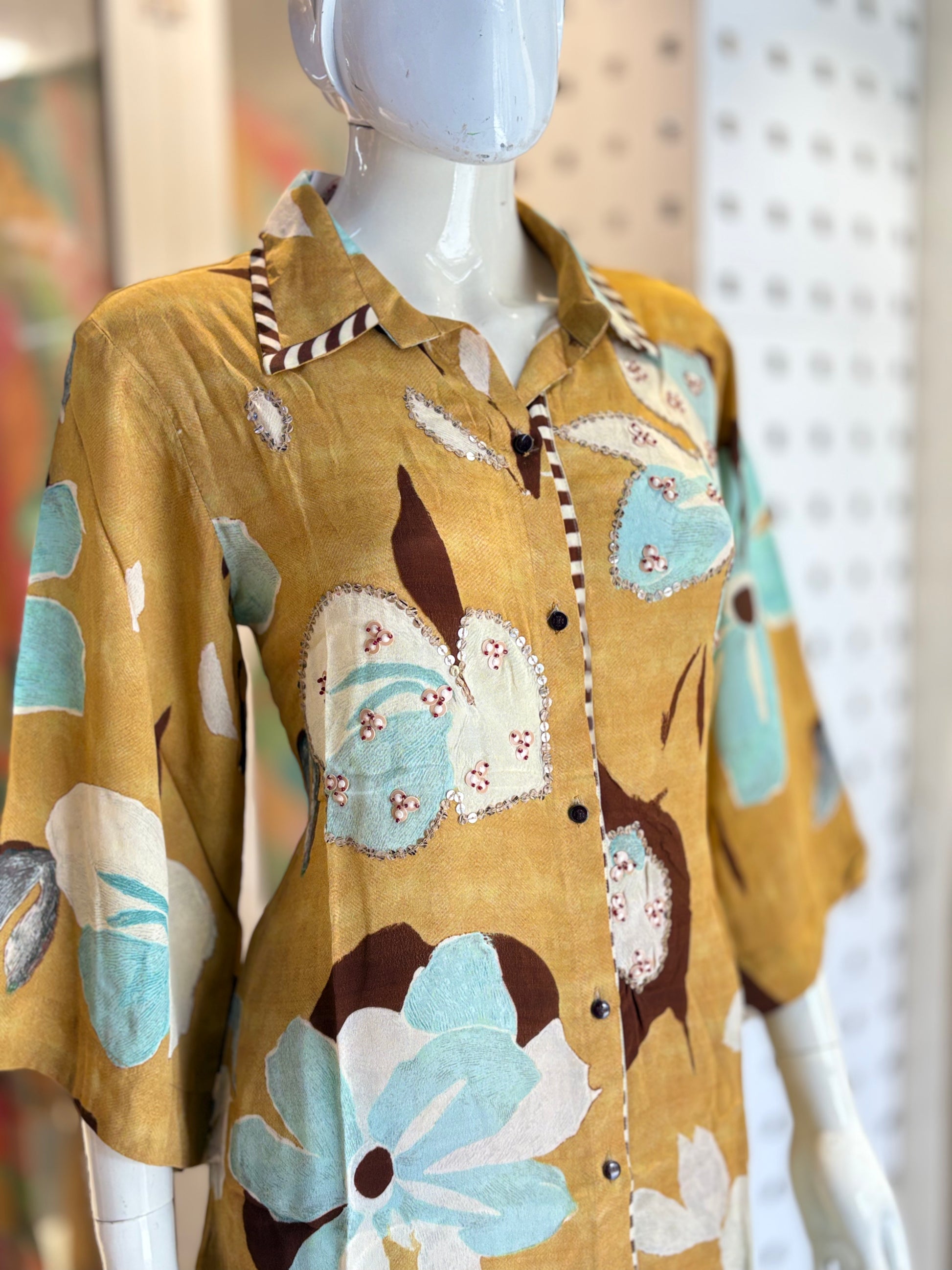 This Designer Cordset features pure crepe fabric adorned with exquisite digital prints, offering a blend of elegance and contemporary style. The intricate sequence handwork adds a refined texture and subtle sparkle, making it perfect for special occasions where craftsmanship and quality are paramount. Comfortable and stylish, this cordset exemplifies expert design and attention to detail.