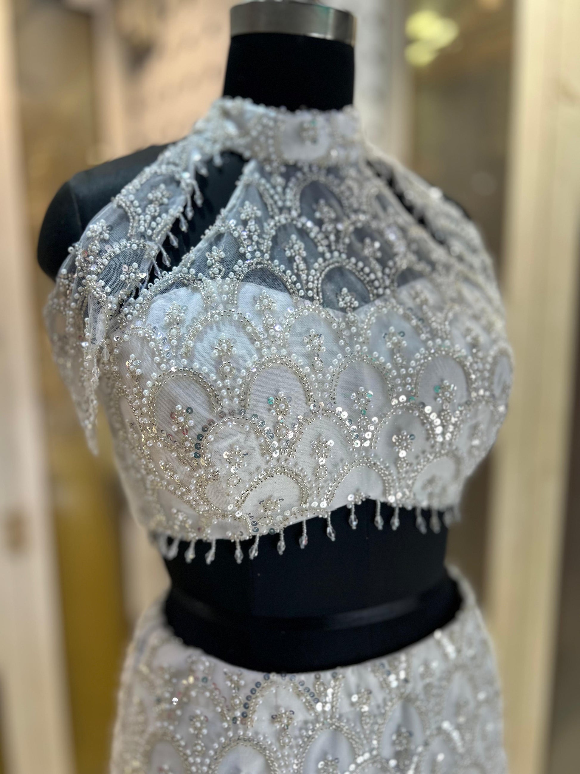 This Fishcut Lehanga Choli showcases exquisite handwork on delicate net fabric, blending traditional craftsmanship with contemporary style. The intricate detailing enhances its elegance, making it an ideal choice for festive occasions and celebrations. Crafted to offer both comfort and sophistication, this ensemble elevates your ethnic wardrobe with a refined, expert touch.