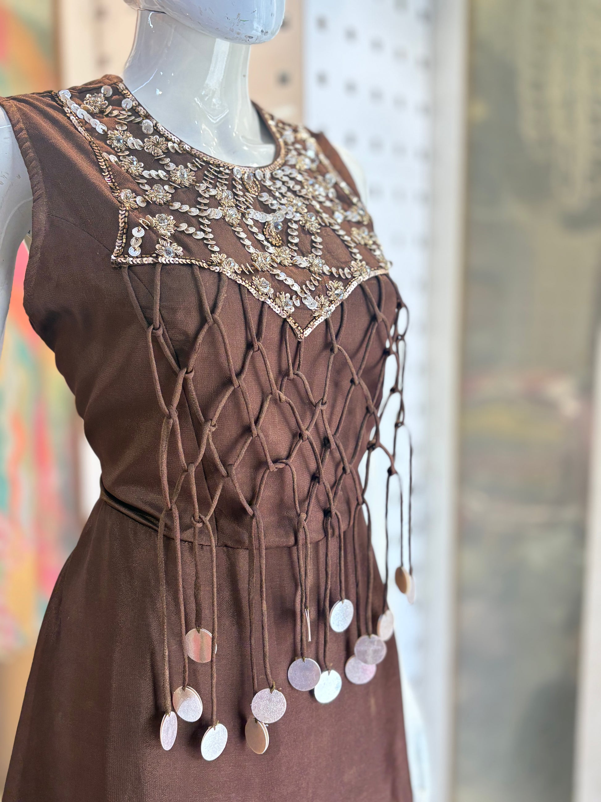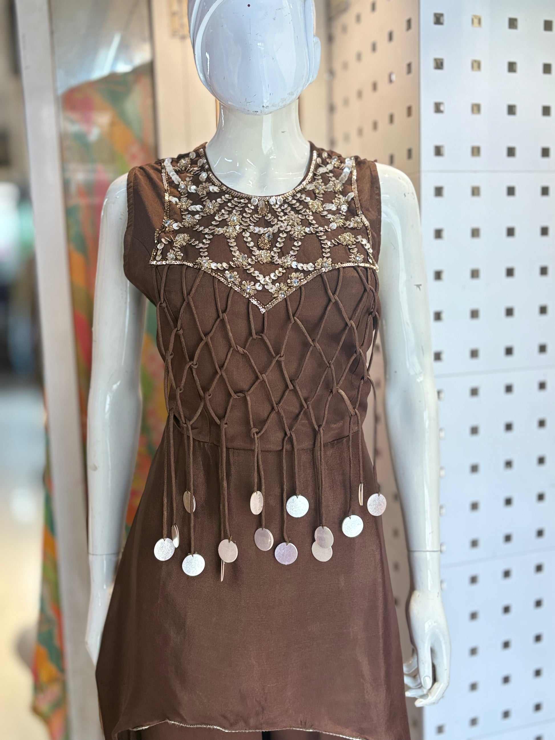 Crafted from pure viscose crepe, this Indowestern up & down kurti paired with pants offers a seamless blend of comfort and elegance. The breathable fabric ensures a soft drape that enhances your silhouette while maintaining durability. Designed for versatility, this set suits both casual and formal occasions, allowing effortless style with expert tailoring and a contemporary silhouette.