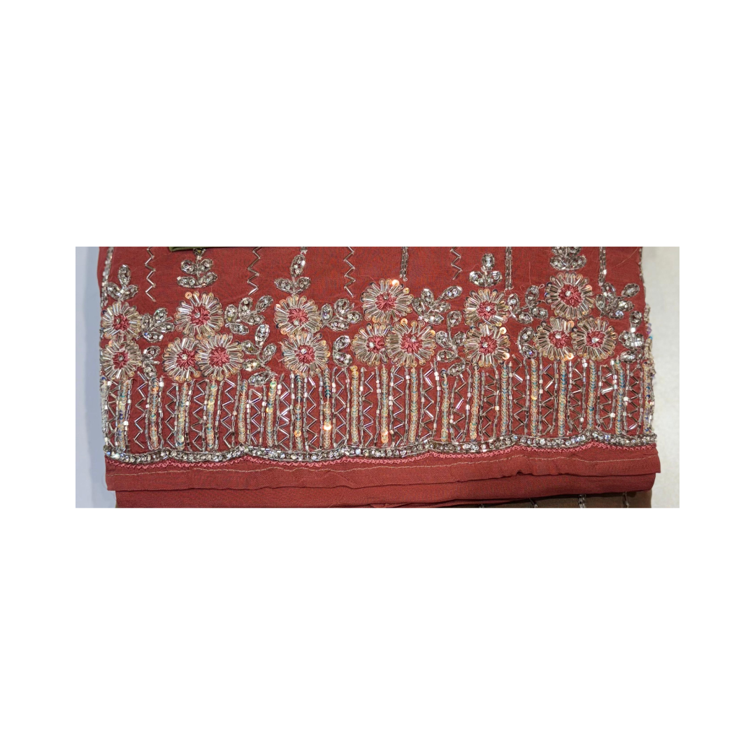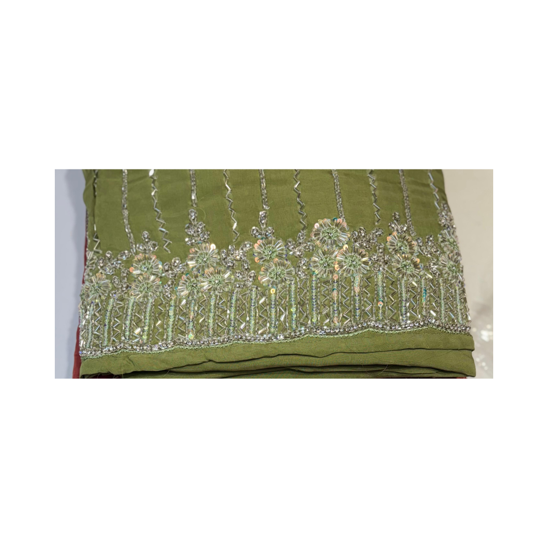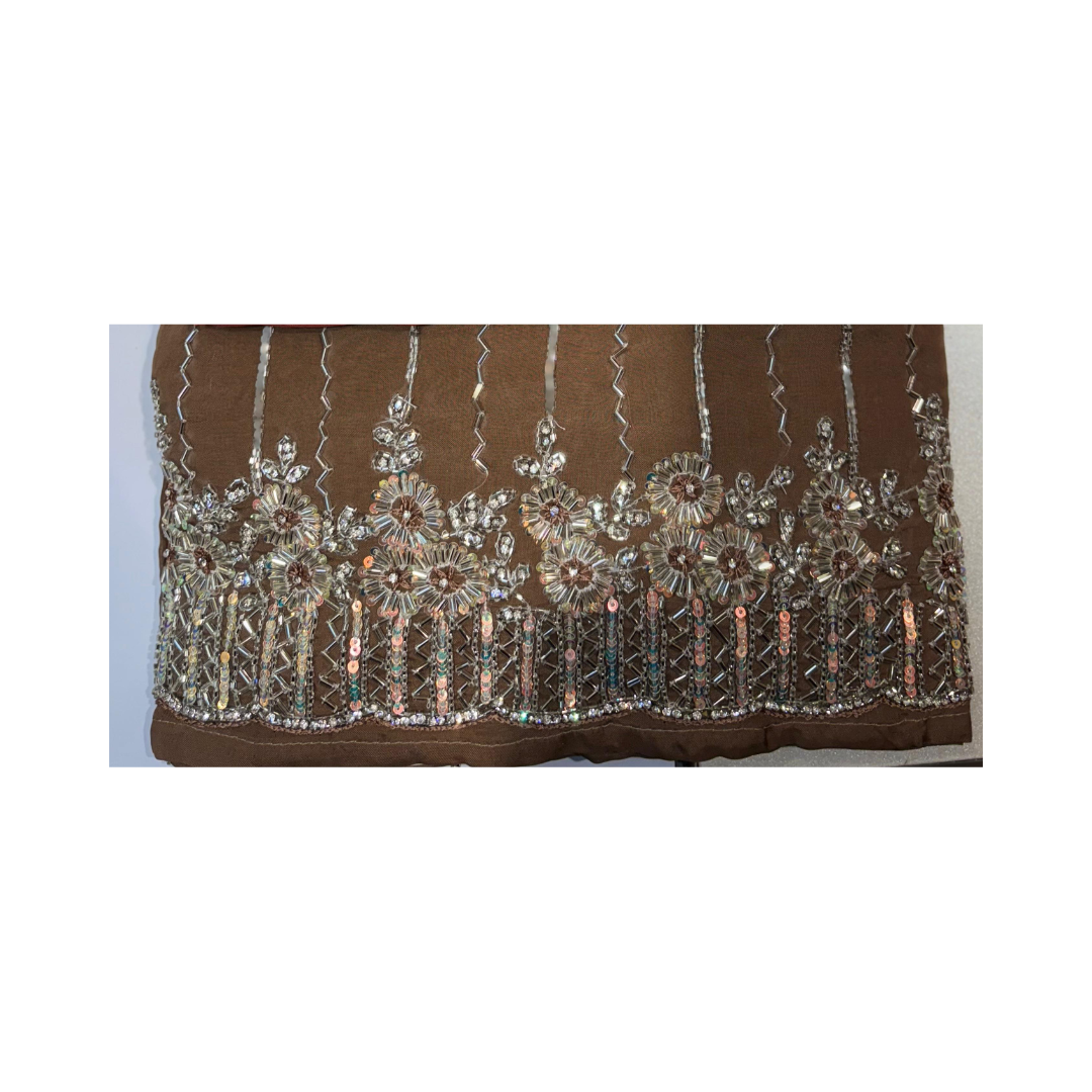 Crafted from exquisite georgette fabric, this garment is adorned with intricate hand work, including trendsetting embroidery, shiny sequins, and dazzling stone embellishments. Elevate your wardrobe with this luxurious and stylish addition, perfect for any special occasion.