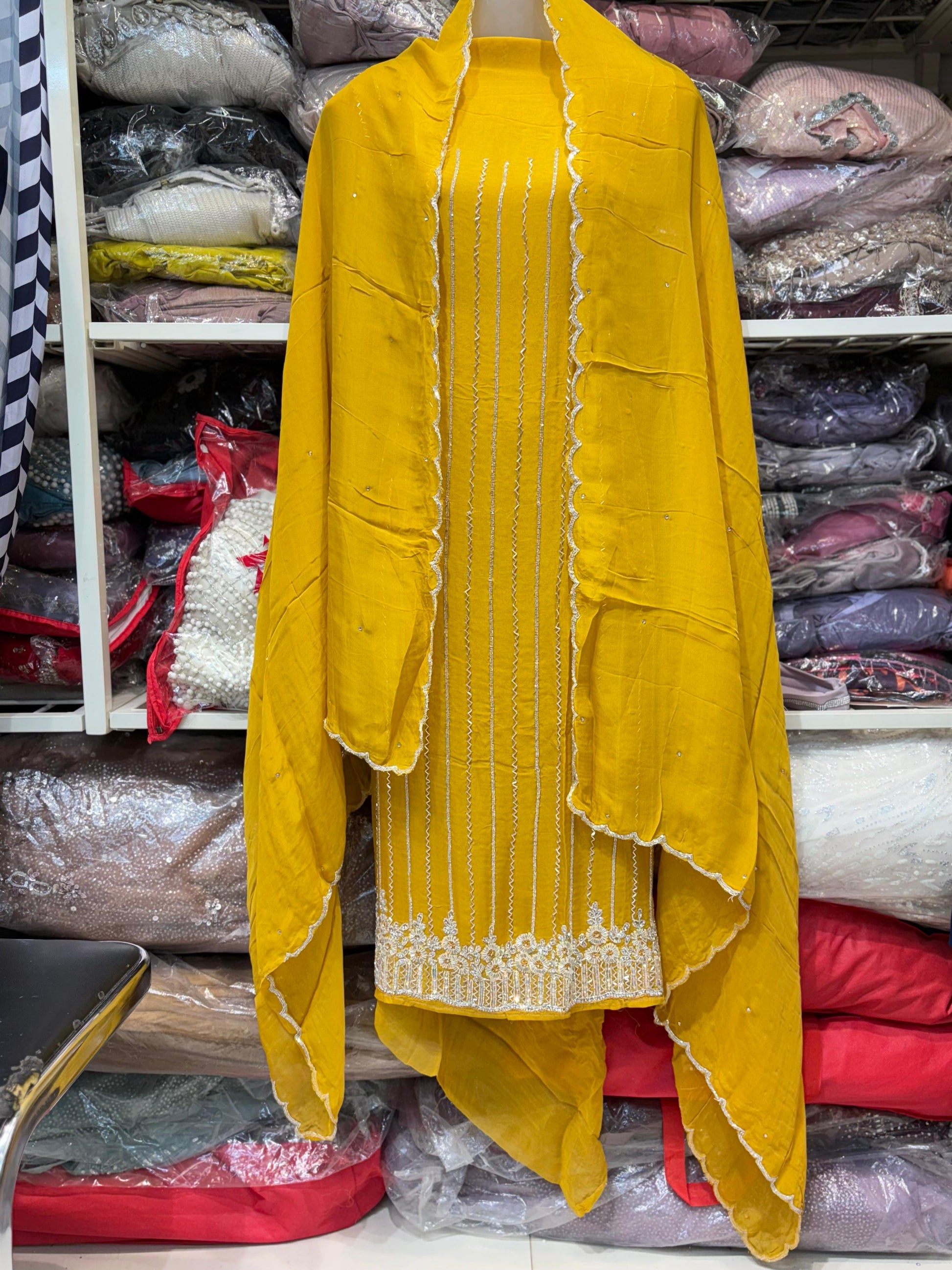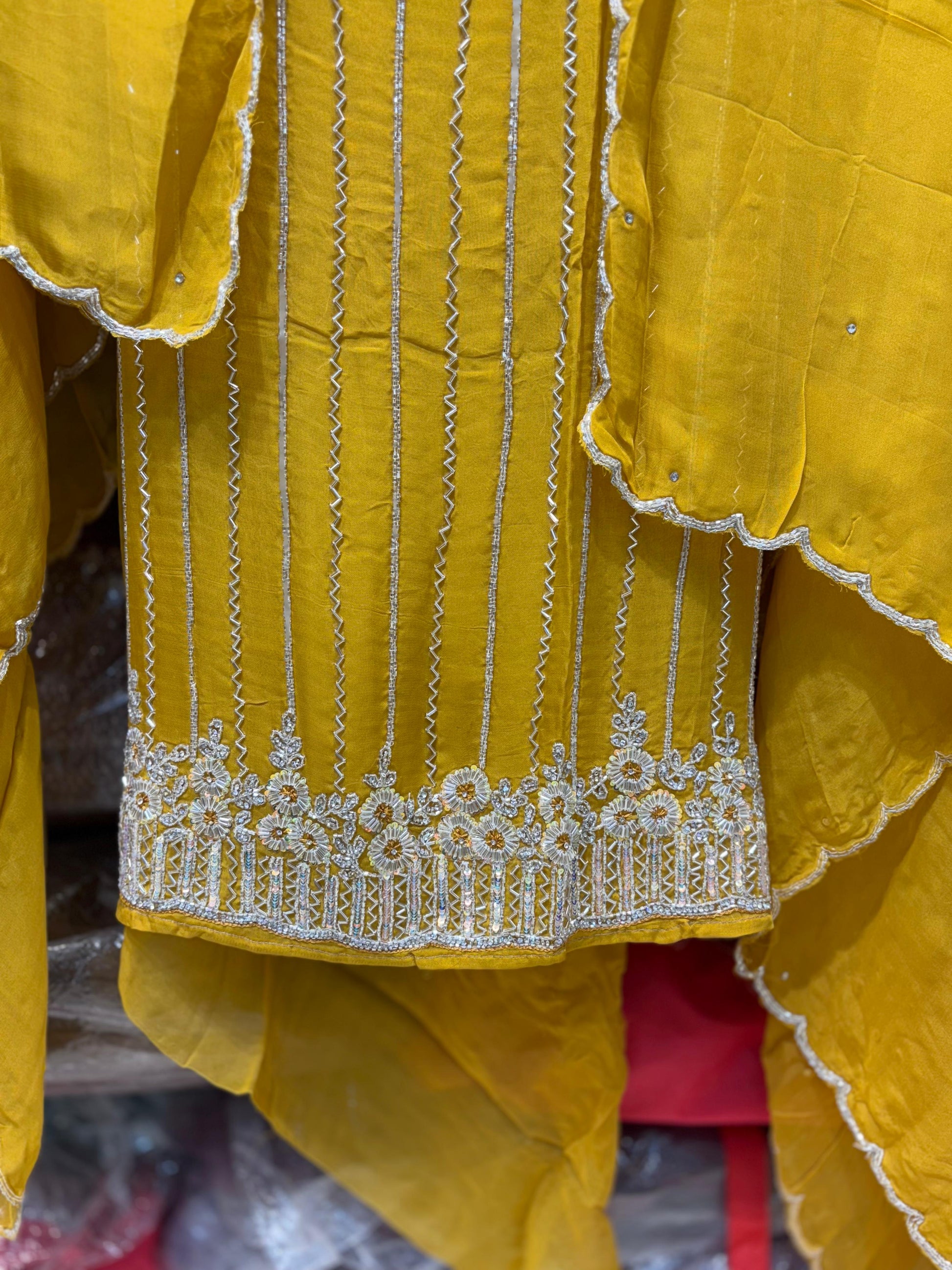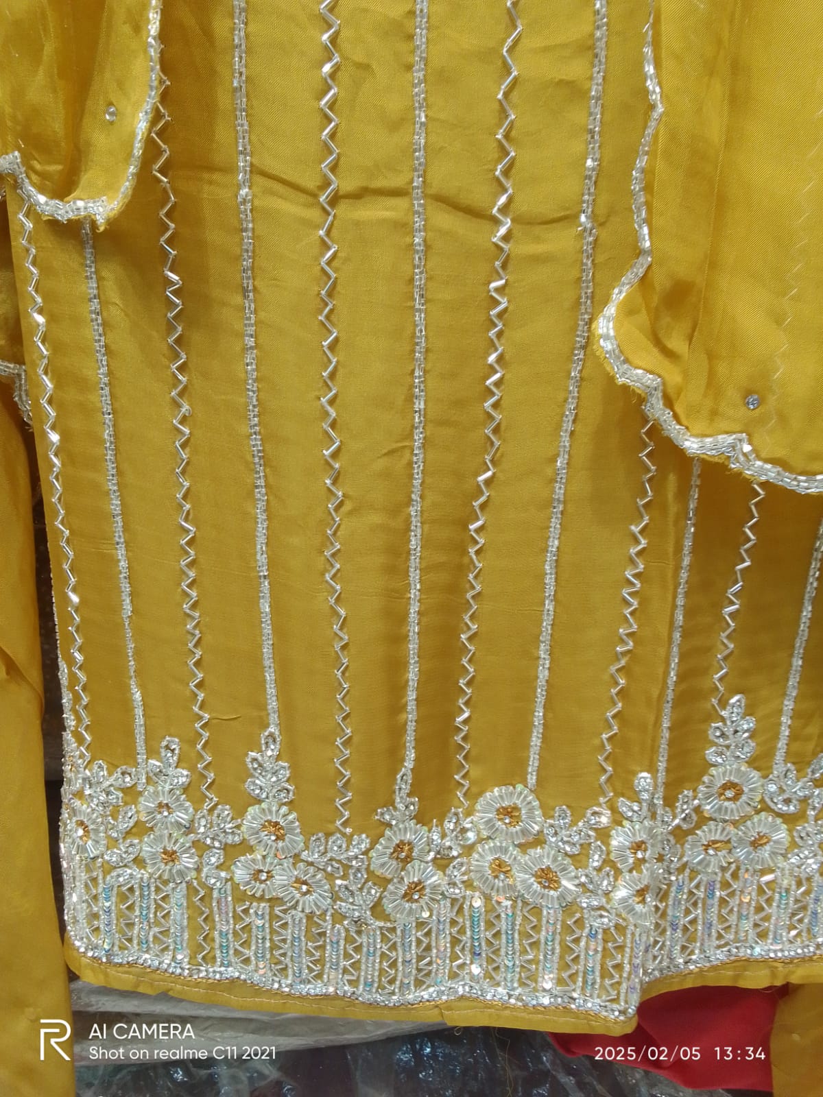 Crafted from exquisite georgette fabric, this garment is adorned with intricate hand work, including trendsetting embroidery, shiny sequins, and dazzling stone embellishments. Elevate your wardrobe with this luxurious and stylish addition, perfect for any special occasion.