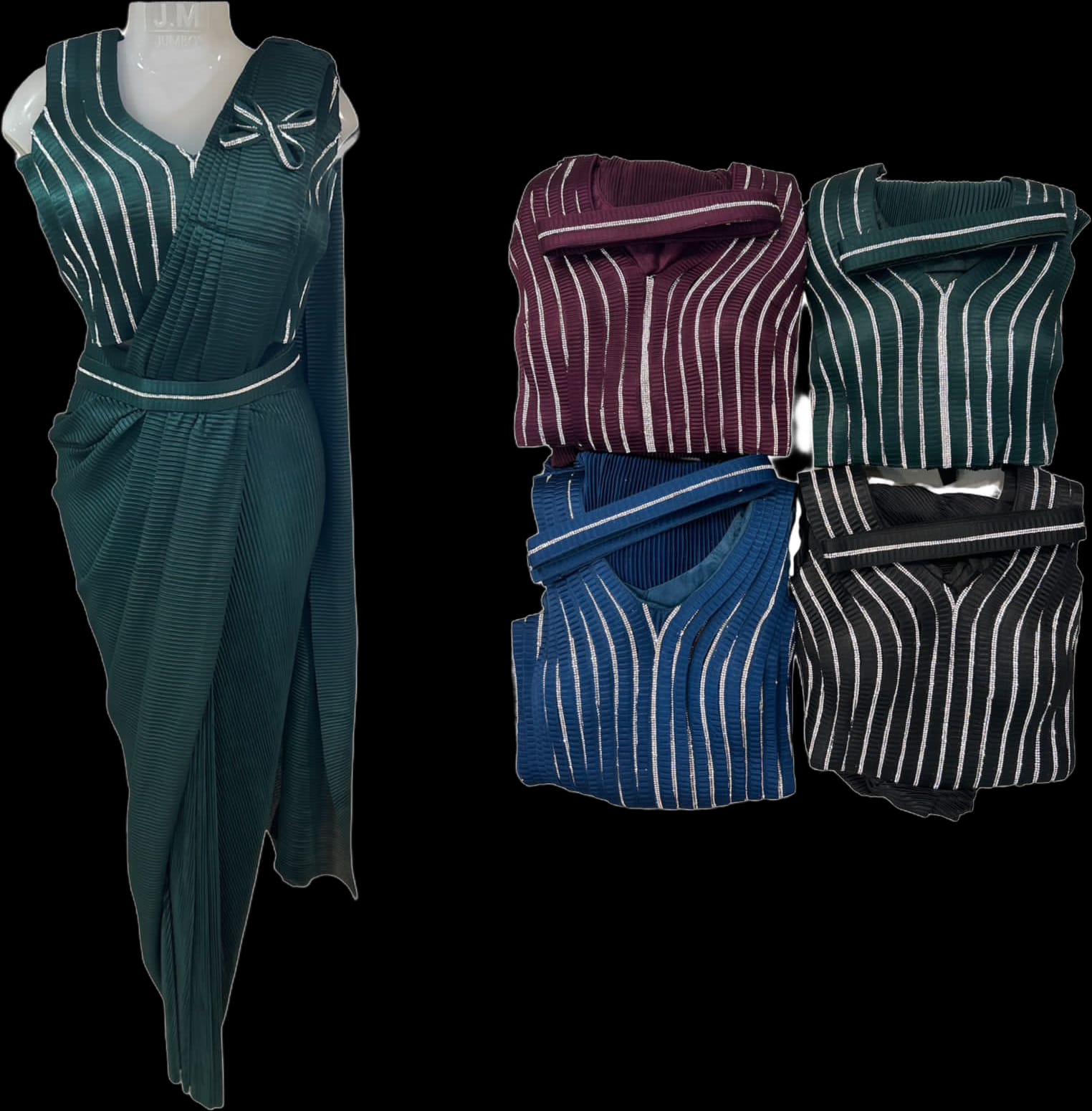 Experience comfort and versatility with Ready Sari, made from high quality Korean stretch material. Its innovative design allows for effortless draping and movement, perfect for any occasion. Say goodbye to restrictive traditional saris and hello to effortless elegance.