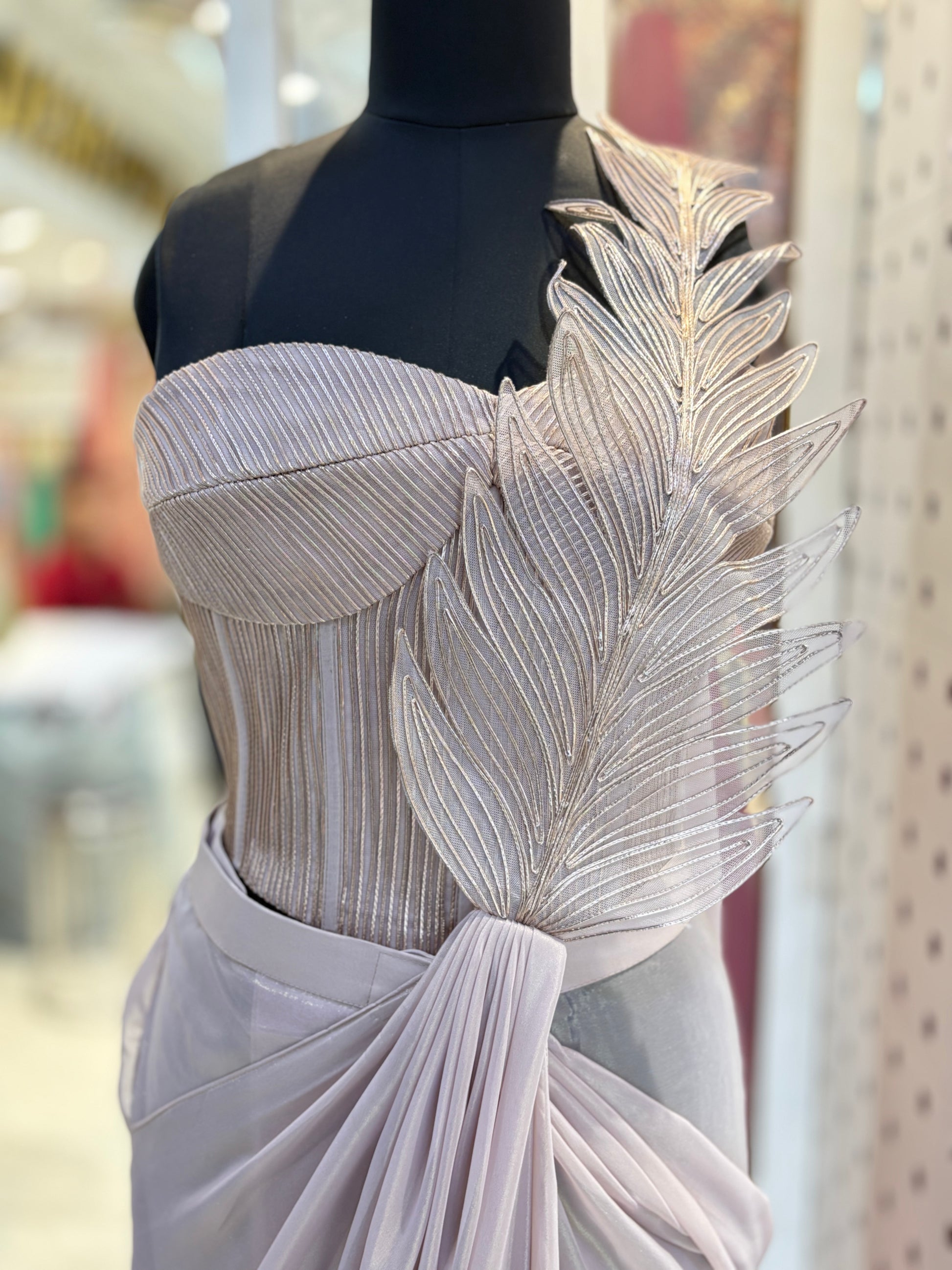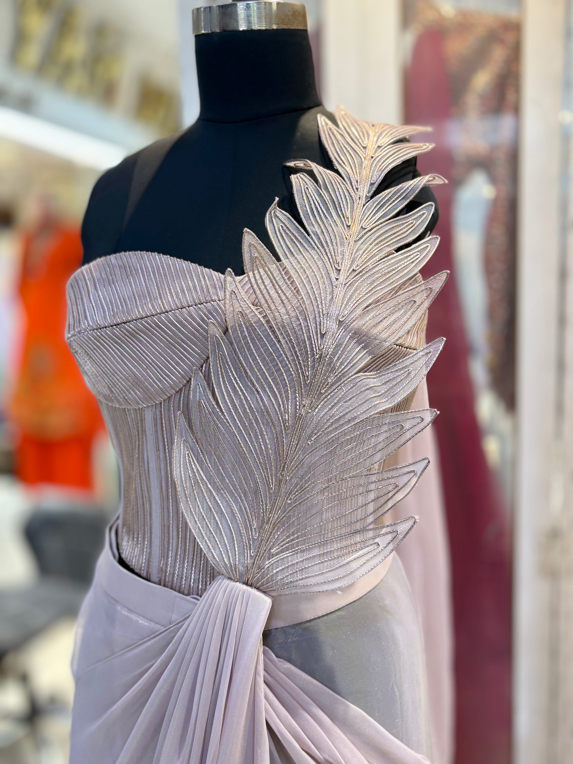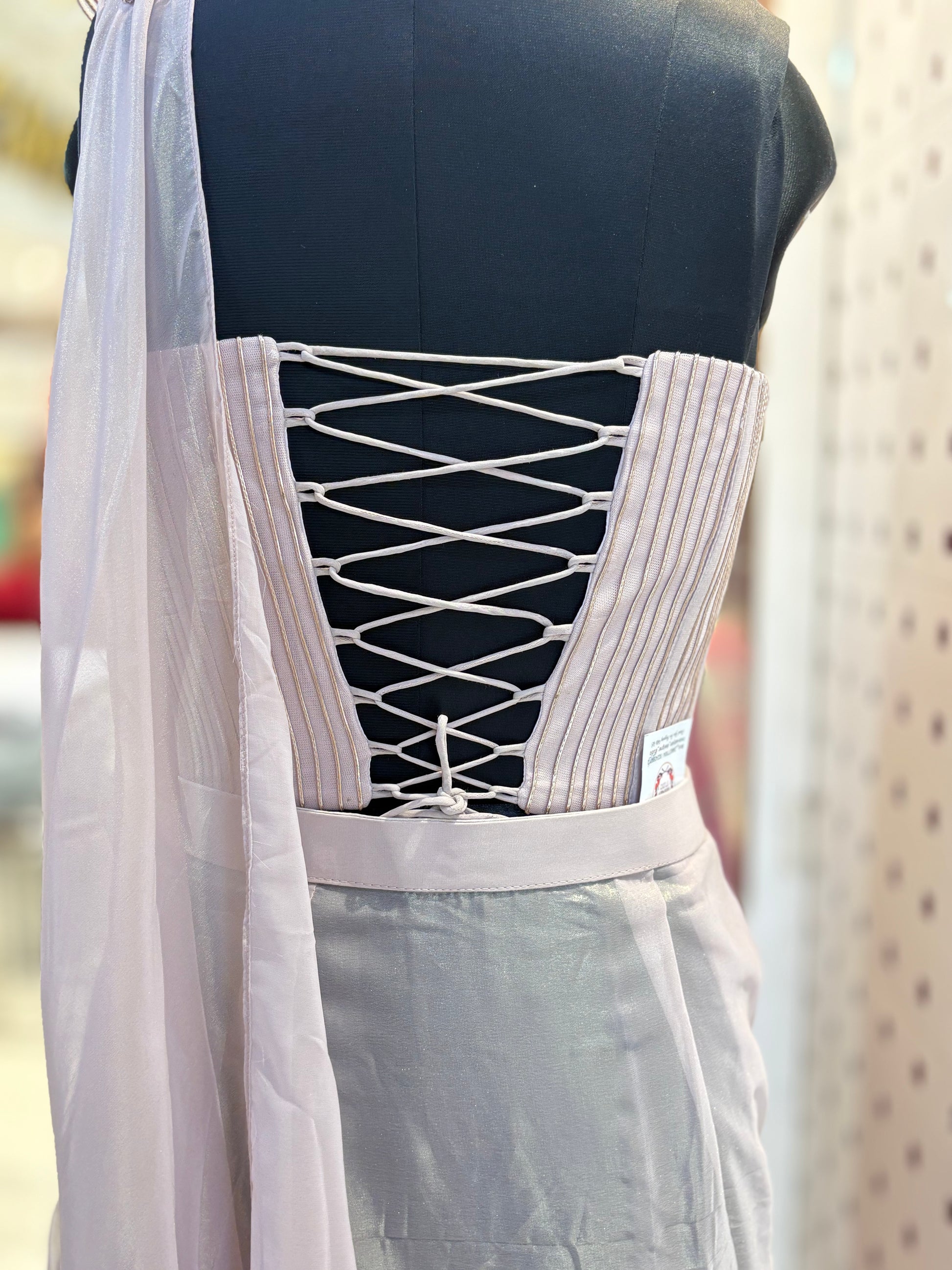 This ready-to-wear saree features a luxurious jimmy choo fabric paired with a stylish cordset blouse. Designed for ease and elegance, it offers a refined drape with minimal effort, perfect for special occasions. The combination of premium fabric and expertly tailored blouse ensures both comfort and a sophisticated look. Ideal for those seeking a blend of tradition and modernity in their attire.