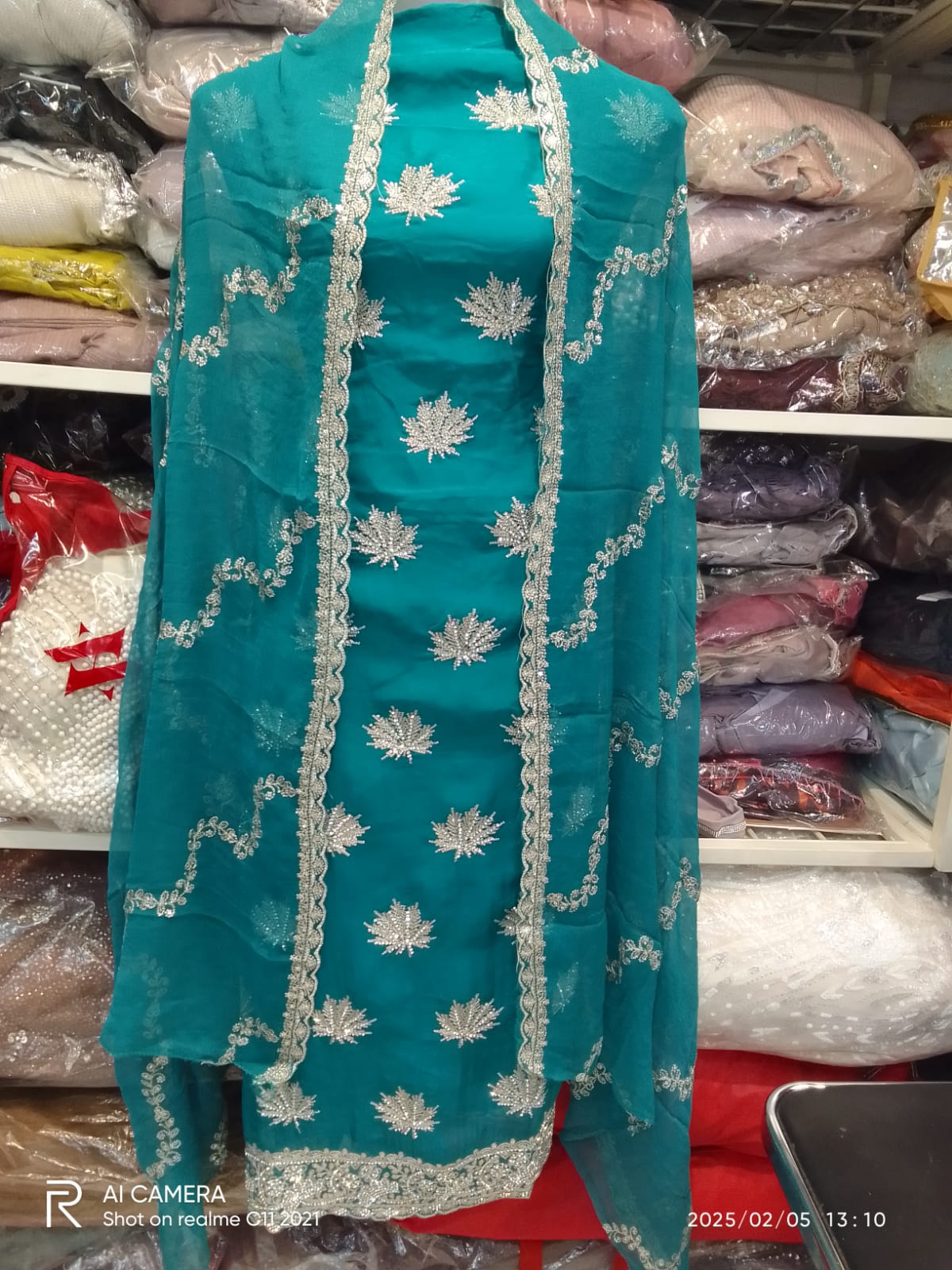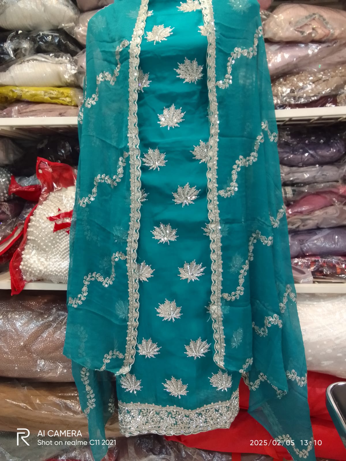 Expertly crafted and designed for style and comfort, our georgette fabric offers a lightweight and flowing drape. The handwork of trendsetting embroidery, sequence, and stone embellishments adds a touch of elegance and sophistication to any occasion. Elevate your wardrobe with this luxurious fabric.